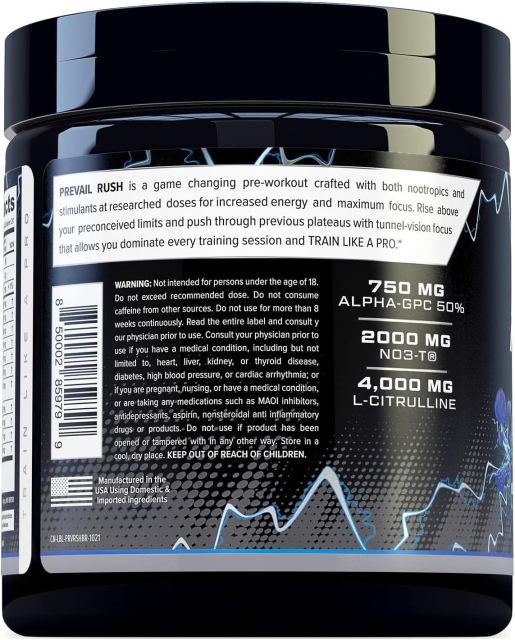 High Stim Pre Workout Powder Prevail Rush Preworkout for Men & Women for Intense Pumps Energy and Focus with Caffeine NO3T Betaine and Dynamine | Sour Blue Razz (20 Servings)